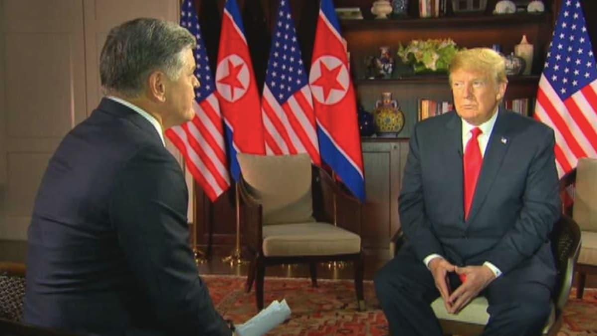 The Commander-in-Chief spoke with Hannity just hours after his face-to-face meeting with Kim Jong Un; explaining his use of heated language when describing the communist leader, whom he referred to at the United Nations as a little “Rocket Man.”