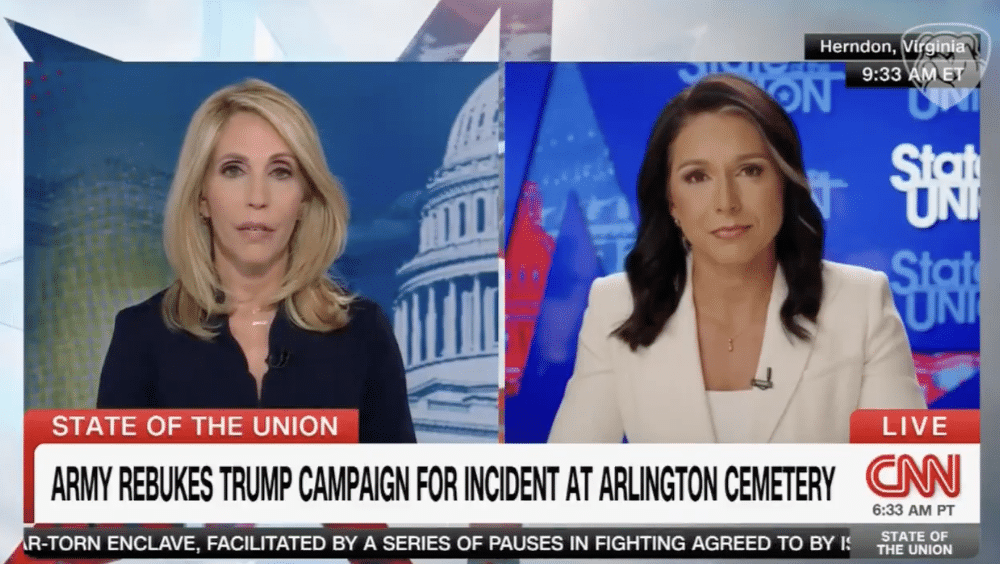 Former Democratic congresswoman and veteran Tulsi Gabbard spoke with CNN’s Dana Bash this week about the controversy surrounding Donald Trump’s visit to Arlington National Cemetery to honor the 13 service members killed during America’s withdrawal from Afghanistan.
