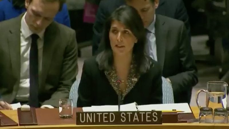 “This is the first time I’ve exercised the American right to veto a resolution in the Security Council. The exercise of the veto is not something the United States does often. We have not done it in more than six years. We do it with no joy, but we do it with no reluctance,” said Haley.